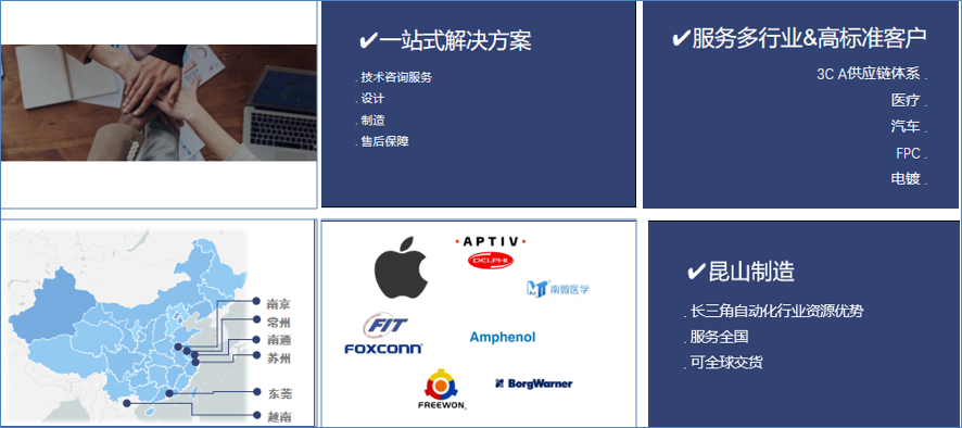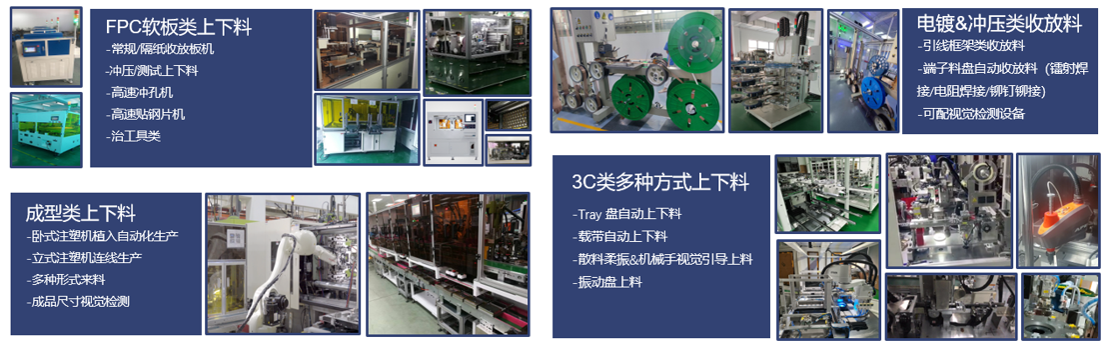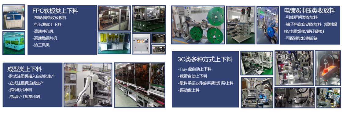 主營高標準非標定制設備,3C、電鍍、沖壓、FPC、成型等多行業(yè)上下料設備,視覺類軟硬件設備,并提供相關技術支持和整套解決方案。